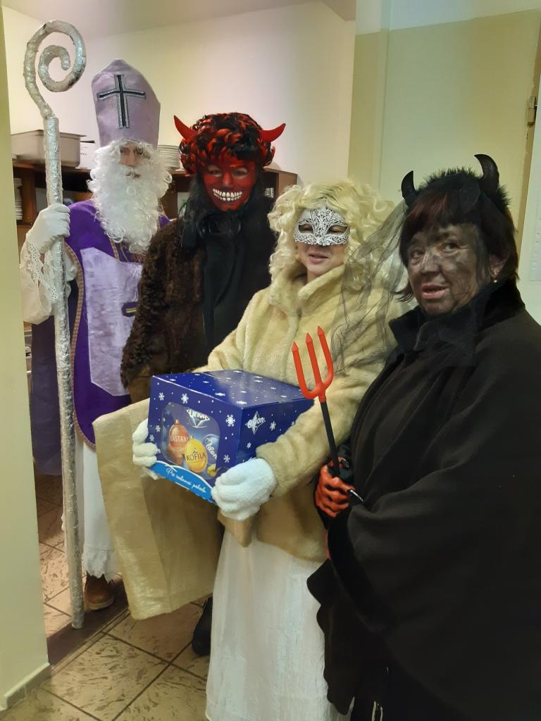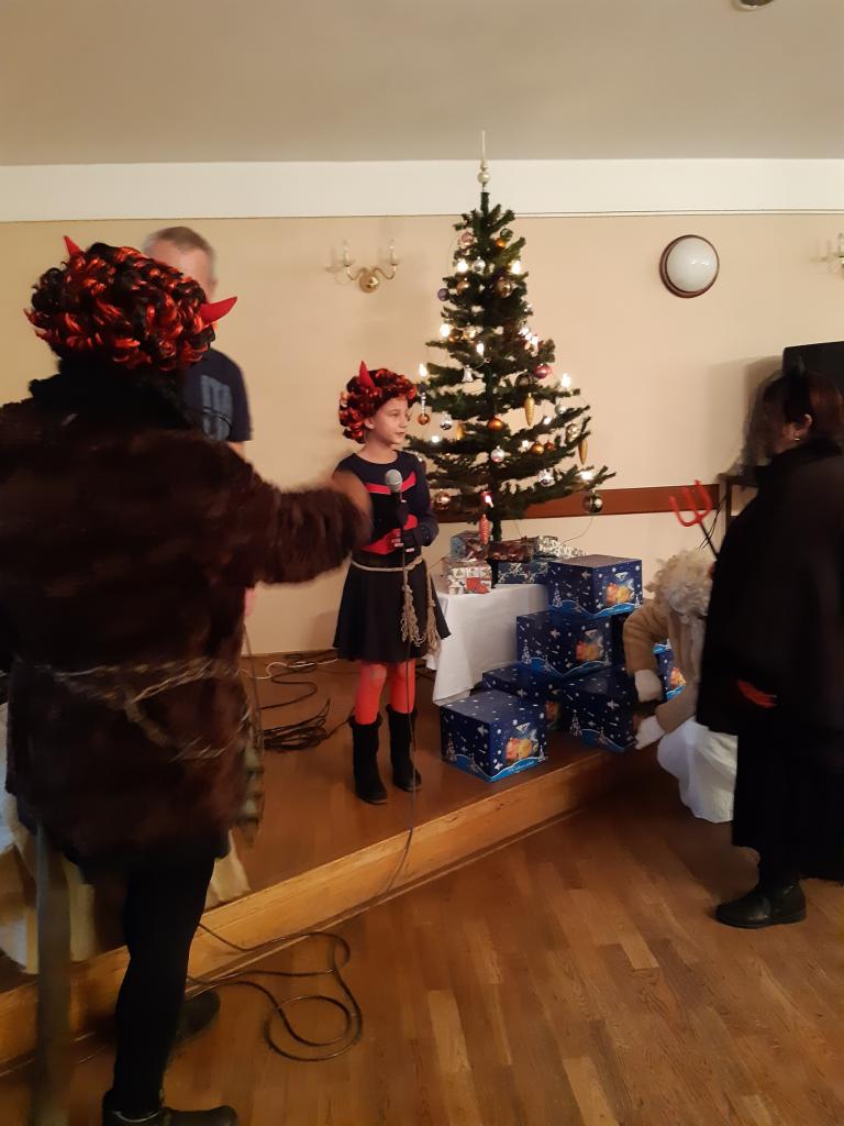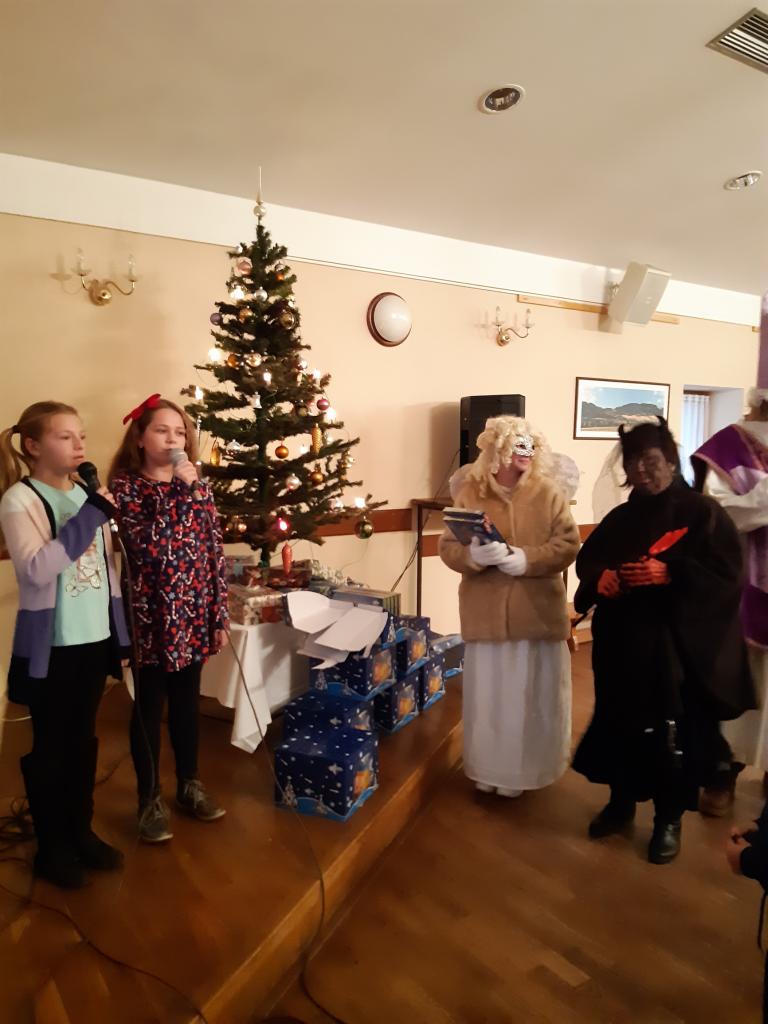 Mikulášská besídka se konala v obecním sále a přišel Mikuláš se svou družinou.